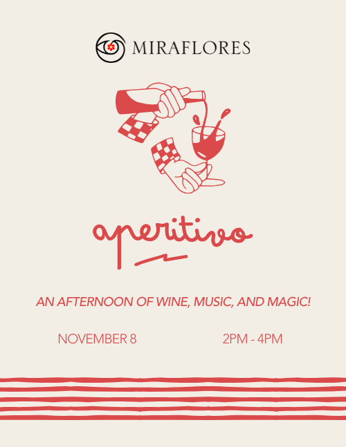 Join Us for an Afternoon Aperitivo at Miraflores Winery! Relax in our beautiful estate setting while savoring award-winning Miraflores wines, with ...